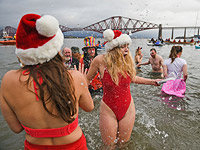 "Моржи" по традиции устроили костюмированные массовые новогодние заплывы в реке Форт в Шотландии и в берлинском озере Оранкезее. Зима в этом году в Европе мягкая, участникам веселья даже не пришлось пробивать лёд.