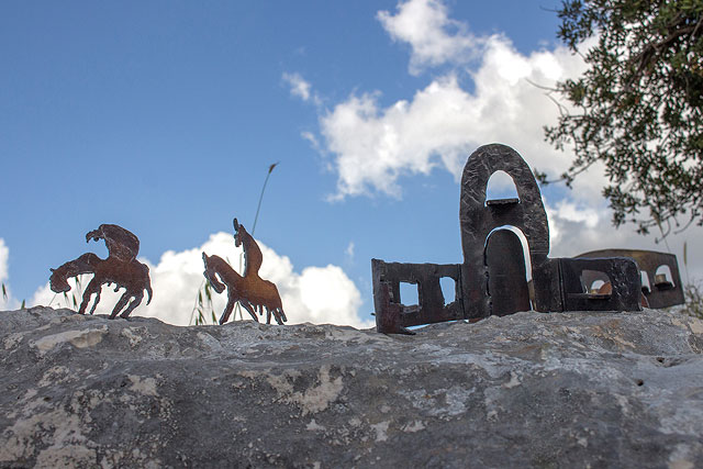 Рассказывает Андрей Куманин: "Последние десять лет я живу на Баркане. За "зелёной чертой". По израильским меркам это даже не провинция или деревня, а скорее дыра. Если ехать от Тель-Авива, от моря в сторону Иордании, доехать до блокпоста, пересечь границу и ещё минут 15 по шоссе между холмами, оливковыми рощами, палестинскими деревнями, то приедешь на Баркан. Здесь дом, семья и кузница. В Израиле я 30 лет. Это моя первая виртуальная выставка. Серия называется "Иудея и Самария". На картинках – то же, что из окна. И ещё мои фигурки, которые я вырезаю в кузне. Моя мастерская находится на территории металлообрабатывающего завода Шляйснер. Он основан эмигрантами из Германии в 1942 году. Я художник этого завода. Фотографии сделал Марат Синельников – мой талантливый друг, который тоже живёт на Баркане".