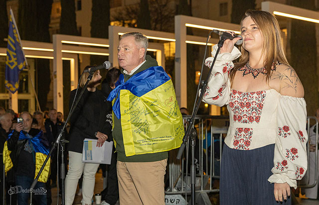 24 февраля, в четвертую годовщину полномасштабной войны, развязанной властями РФ против Украины, в Тель-Авиве на площади Габима состоялся митинг в поддержку украинцев.
