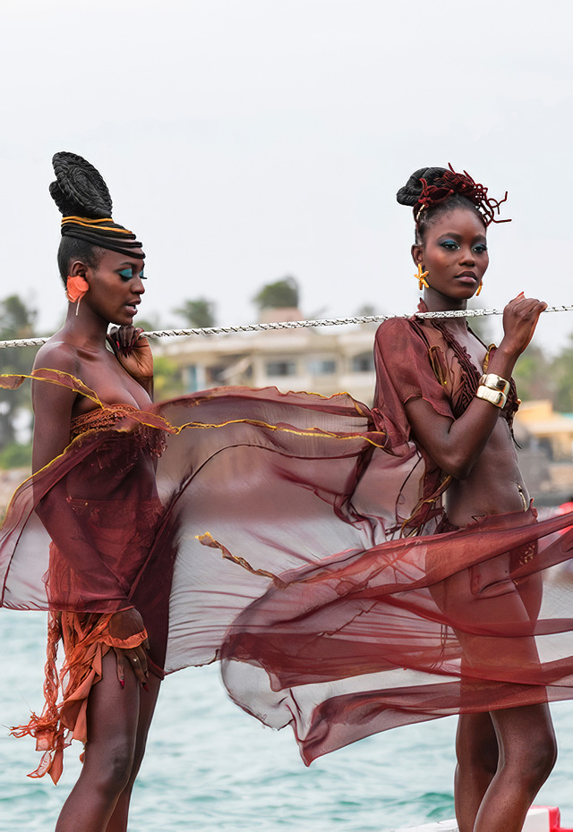 В субботу, 6 декабря, необычный модный показ состоялся в рамках Недели высокой моды в Дакаре (Сенегал). Новые коллекции были представлены на больших рыбацких лодках – традиционных плавсредствах для этих мест.